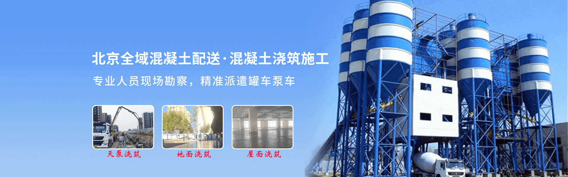 北京全域混凝土配送,混凝土浇筑施工,地面屋面浇筑,天泵地泵派遣直达,普通标号混凝土:C15-C60混凝土。特殊标号混凝土: 细石混凝土,抗渗混凝土,彩色混凝土,微收缩混凝土等......调配大小混凝土罐车。大小天泵:28米-63米,以及超长距离输送地泵。大中小建筑工程,疑难场地均可承揽浇筑: 底板,垫层,地梁, 圈梁,顶板,地下室,室内保护层 ,国道市道,以及乡村道路,民房,楼房建筑等,公园地面,污水排放改建工程,美丽乡村改建项目。专业人员上门勘查测量场地,准确配送混凝土大小罐车及输送泵车。协助现场指挥车辆作业。保证质量,方量,标号!